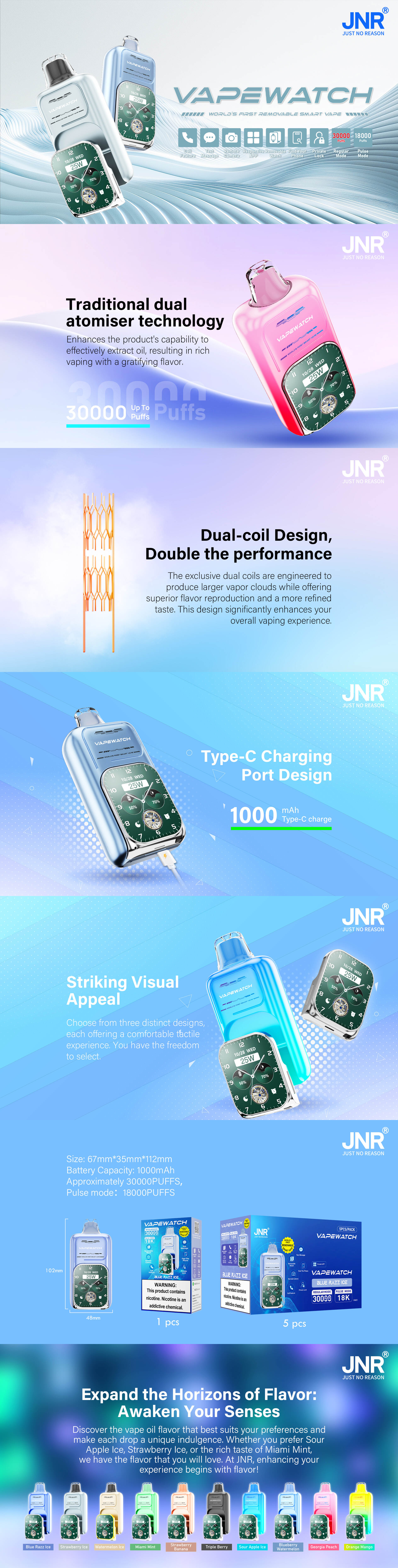 Jnr®vapewatch लगभग 30000puffs, नियमित मोड 18000puffs, 1000mahbattery क्षमता। फ्लेक्सिबल टच स्क्रीन ऑपरेशन आपको जल्दी से उन कार्यों का चयन करने की अनुमति देता है जिनकी आपको आवश्यकता है। स्वाद, अपने vaping अनुभव को पूरी तरह से बढ़ाना। Vape तेल का स्वाद खोजें जो आपको सबसे अच्छा सूट करता है और हर ड्रॉप को एक अद्वितीय उपचार बनाता है। चाहे वह खट्टा सेब की बर्फ, स्ट्रॉबेरी बर्फ, या अमीर मियामी टकसाल हो, हमारे पास वह है जिसे आप प्यार करते हैं। JNR अपने अनुभव को अपग्रेड करता है, स्वाद के साथ शुरू होता है! मुख्य विक्रय बिंदु: टर्बो मोड कॉल सुविधा पाठ संदेश दूरस्थ कैमरा उत्तरदायी ऐप हटाने योग्य घड़ी अपने फोन निजी लॉक खोजें